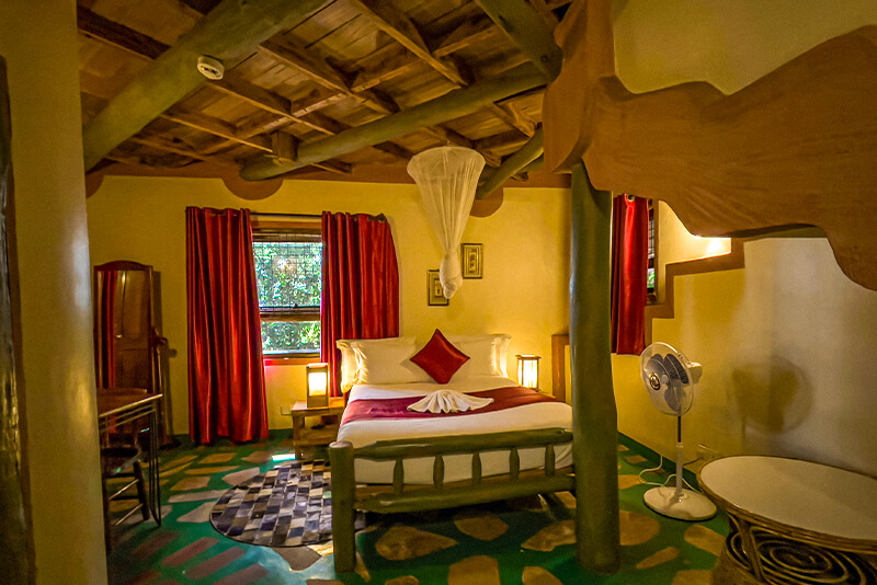 The Standard Double Rooms provide comfortable accommodation with spacious rooms that is ideal getaway for families or groups. Decorated with local handmade furniture and an African style tree house feel, it has all the essential amenities Wi-Fi, 24 hour hot & cold water, shower, digital room safe, wake up call on request, DSTV, room refrigerator, study table and a comfortable sitting area.
